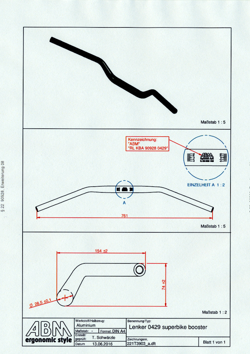 Wir liefern nur noch AL-Lenker in Gold oder schwarz von ABM. Diese Lenker haben keine Gutachten für MZ, sondern nur eine ABE für andere Marken und sind somit Eintragungsfähig mit TÜV-§ 21 Sondereintragung. Dieser Lenker besitzt die genauen Abmaße des Original MZ-MZ-1000 SF-Lenker in Farbe schwarz oder gold. Rohrdurchmesser D-28,6 mm Klemmbereich / Griffenden 22 mm.