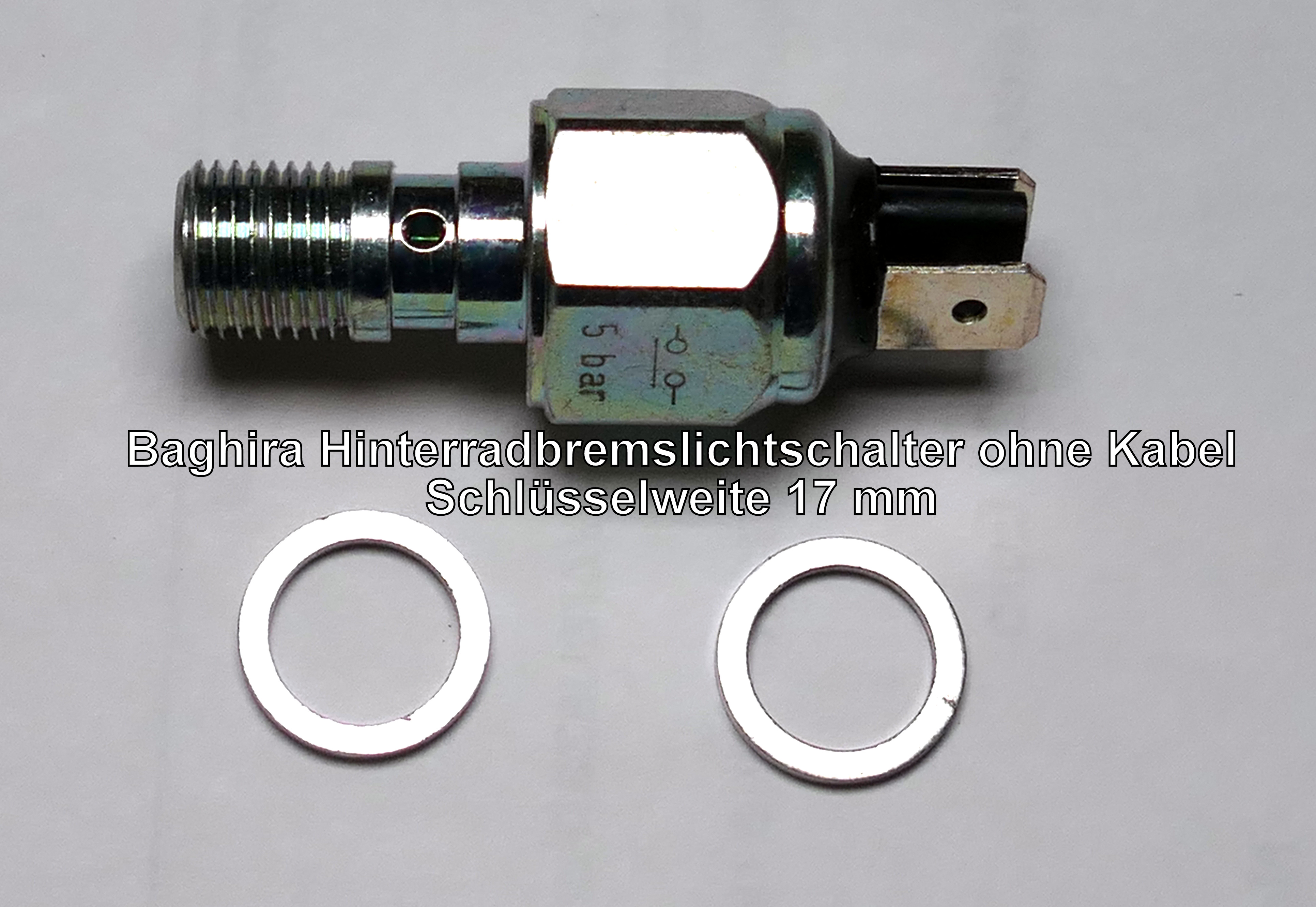 Original Baghira Hinterradbremslichtschalter M10 x1 mm , incl. Dichtringe , Schlüsselweite SW-17 mm.