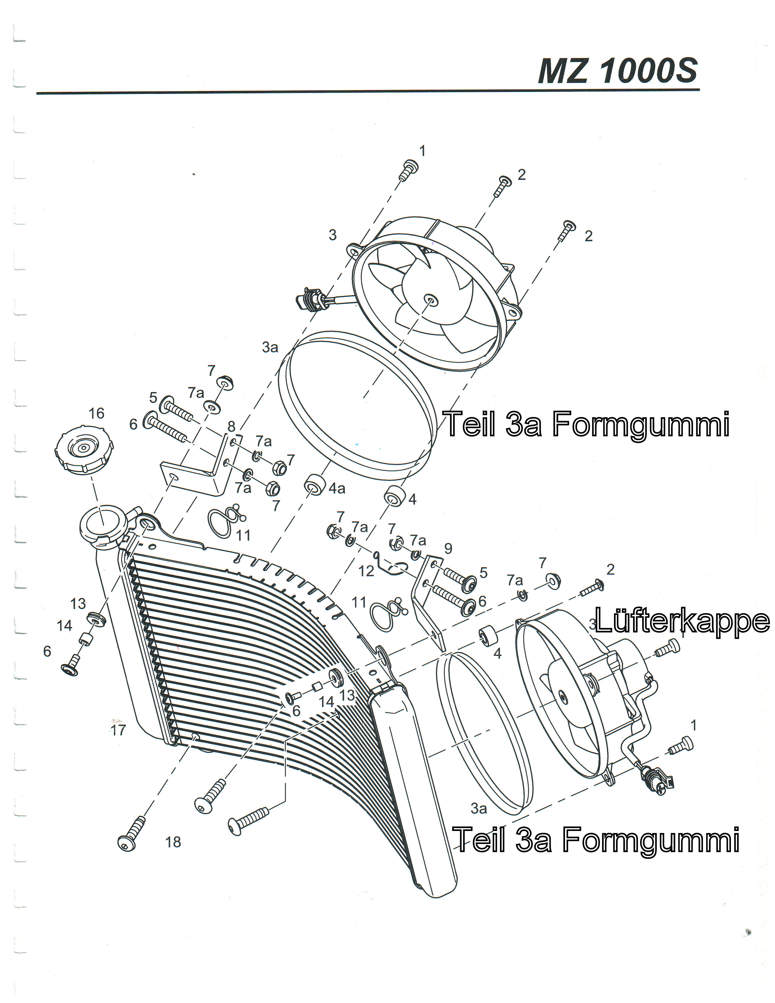 Die einzige Lösung war, hiermit können wir in Eigenherstellung, vermessen und angepasst an einem MZ-1000 Kühler links u.rechts, 2 Satz Kühlerlüfter Formgummi liefern.