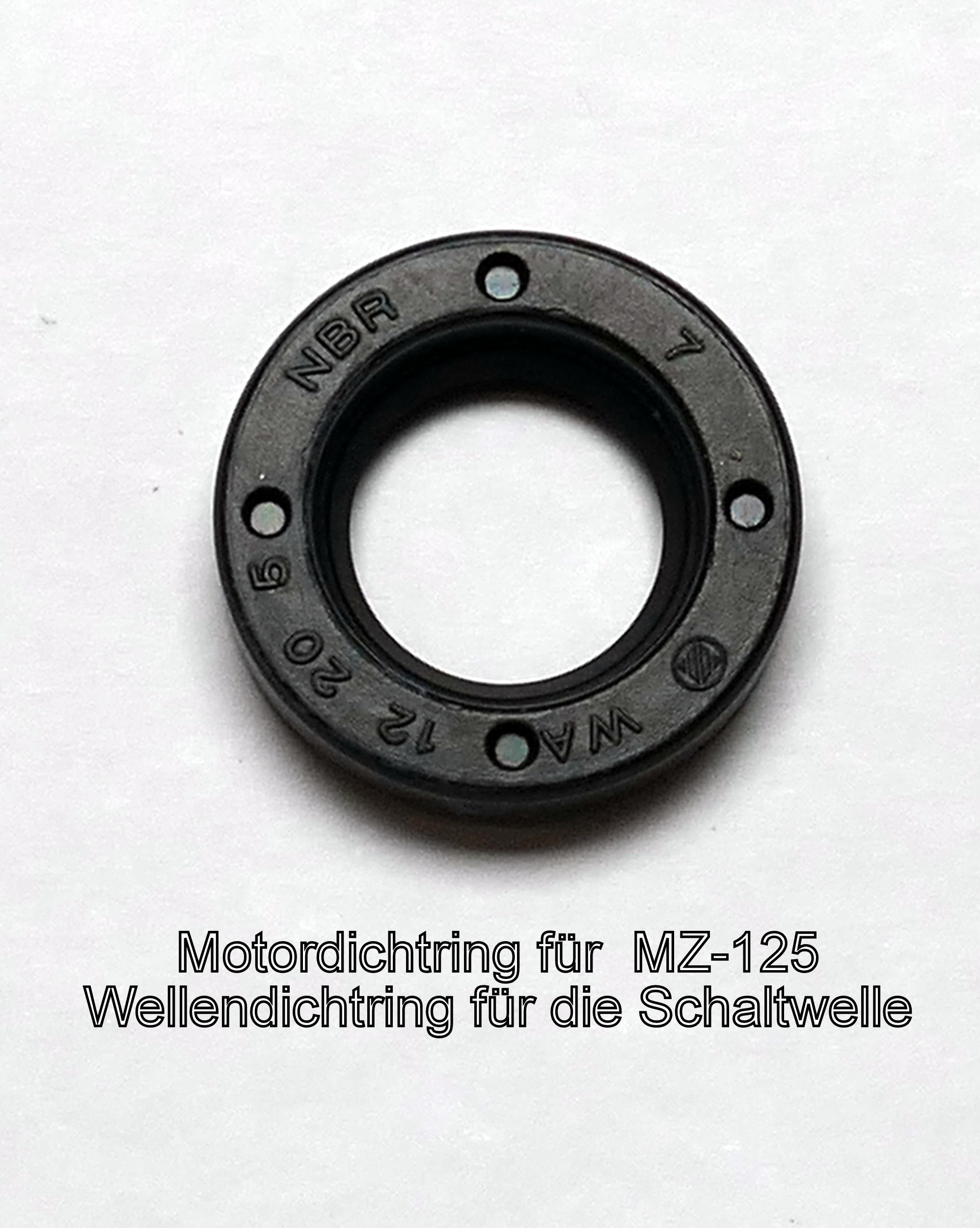 Wir liefern hier den Simmering für die Schaltwellenabdichtung vom MZ-125 Motor, auf der linken Seite.