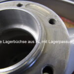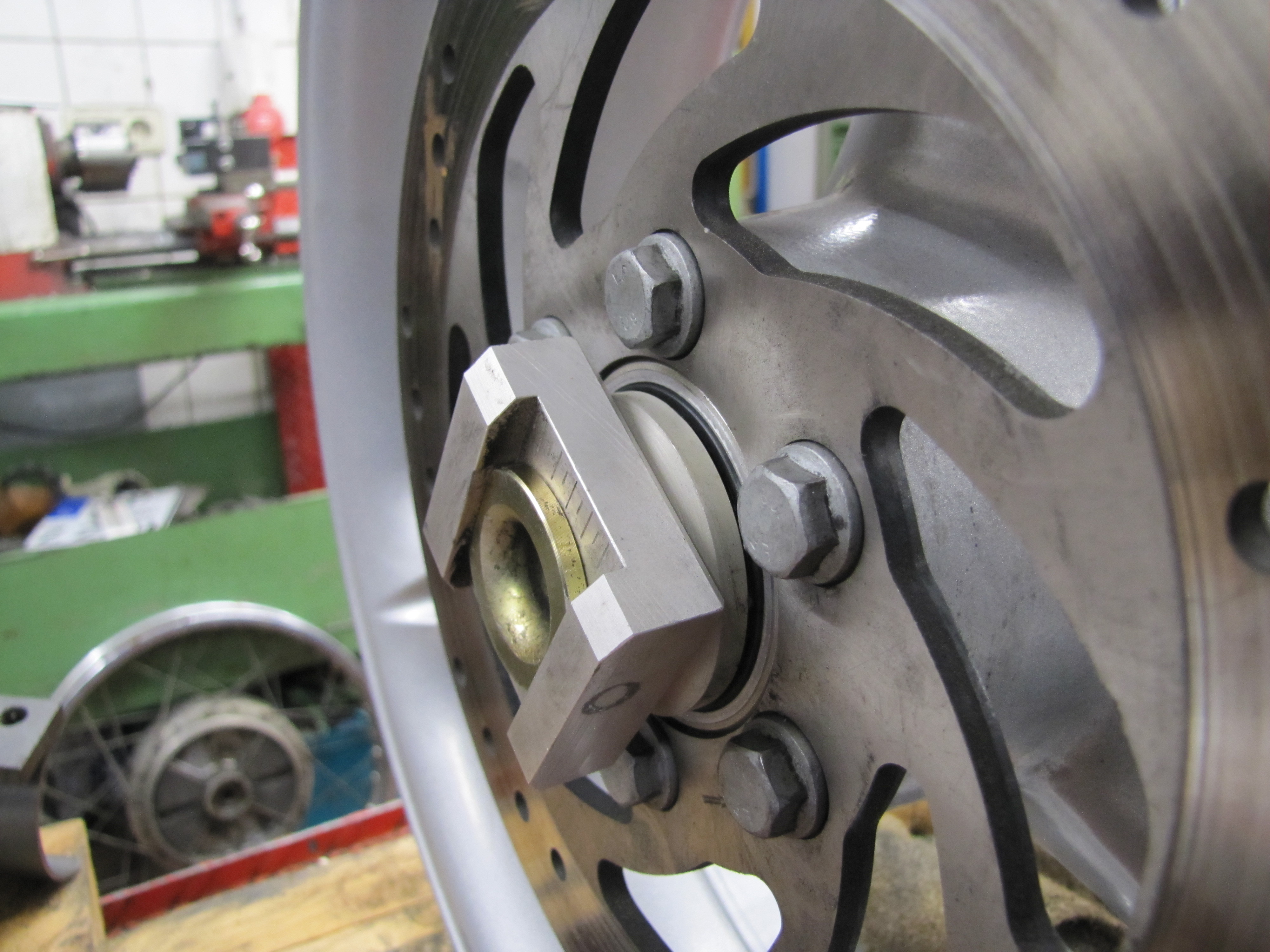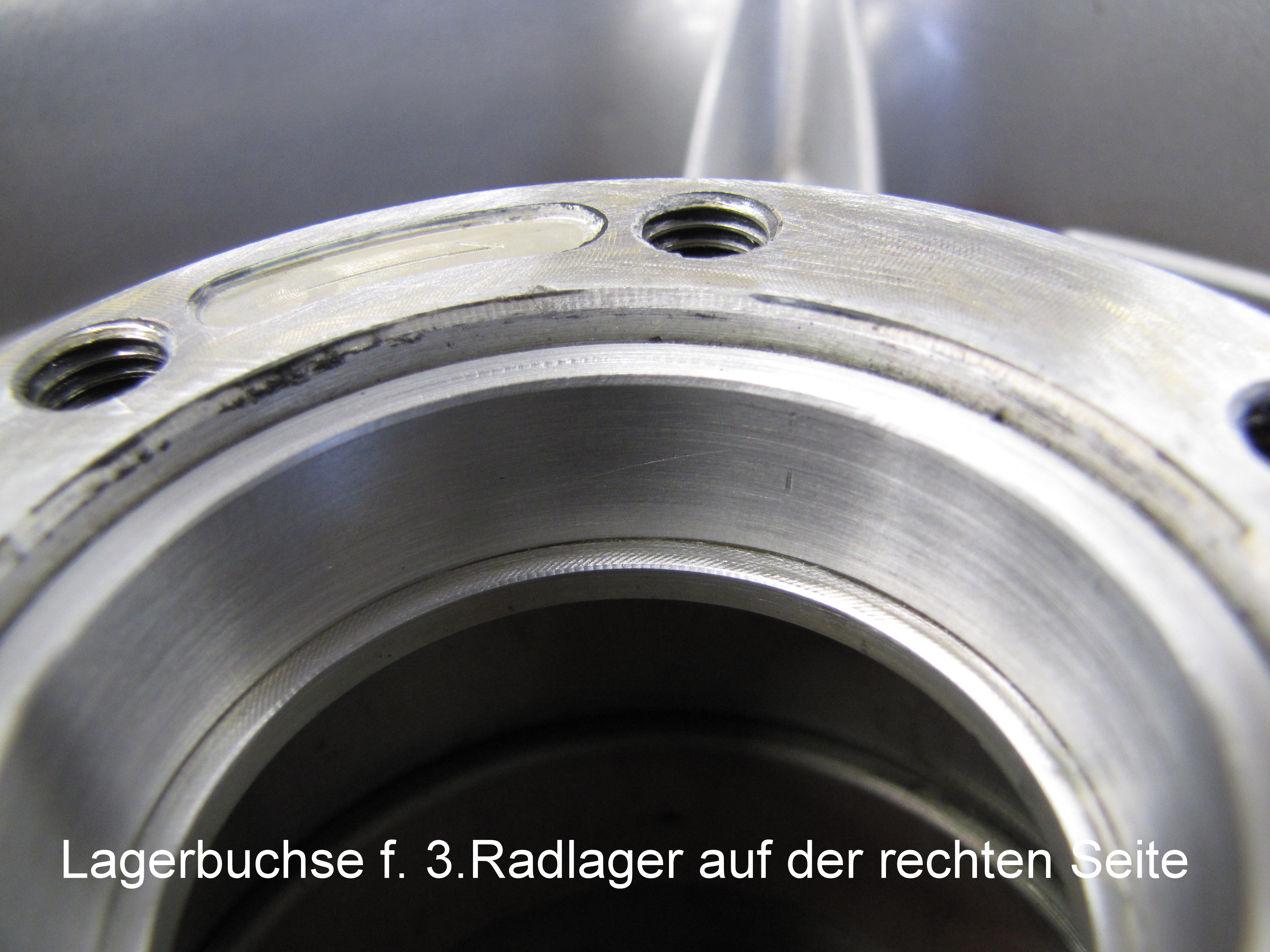 Beispiel neue Lagerpassungen für MZ-1000 V.-u. H.-Räder, auch möglich mit 3. Hinterradlager zur Verringerung der Radlagerabstände. ( Diese Verbesserung wurde auch nach Rücksprache 2006 empfohlen vom MZ-Werkskundendienst wegen 2-Zylinder-Lastwechsel. )